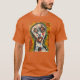 My 11 yo wore adult XL (5’7” 165#). The 8yo is small framed. She wore adult small and tied it in the back. Grandma wore adult large with long sleeve shirt underneath. Tall girl adult medium. Dark haired male adult large. Good quality dark Heather gray, Gildan brand shirt. -it was next up from basic choice and cost about $20 per shirt. Not too thick or thin. Washed and dried well, no major shrinkage. Not see-through. Can wear a bra under it fine. Screen print is just as shown and well done, front and back.
