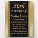 You, or Designer Linda, can also CHANGE the Black Background or Gold Customizable Text to ANY COLOR. Only Linda can change the 50th Birthday and Gold Borders to any color.