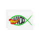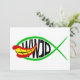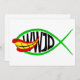 A parody design of the Ichthys (Jesus Fish). The design of the Ichthys fish, mashed up with the Joker Fish from a comic book cartoon. WWJD in black text is inside the fishing, asking, "What Would Joker Do?"