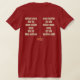 My overall review is that the T-shirt is nice, it fits true to size however the font is significantly smaller than advertised and you can't read it. The printing is unreadable and there is a strain to read it. It does not look like the advertised product. Maybe the shirt color is darker or a larger more visible font should have been used. Photos with and without flash and font is barely legible.