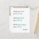 "What you think, you become. What you feel, you attract. What you imagine, you create." True wisdom by Gautam Buddha - a quote on life's truth about you, a quote to help you understand you & your life, better; a quote on your reality. Featured here on a cool custom postcard with your custom message / note in the back in elegant faux gold script / typography. Simply type in your message / note, to personalize. Makes a great gift for friends & family, for graduation, birthday, christmas, holidays, new years, and more.