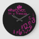 Funny hot pink and black, whatever, I'm a princess wall clock. Featuring a pink crown with falling numbers.