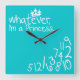 I'm late? Whatever, I'm a princess. Funny wall clocks. Teal blue and White.