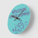 This wall clock is customizable it says Whatever, Im late anyway with a pile of numbers in the bottom corner. You may change color of clock and wording