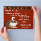 Spruce up your shop with these matching mugs, t-shirts, flyer, letterhead and profile card with our design What’s a coffee, Without a donut!, featuring a whit cup with coffee in it and steam coming of it and a chocolate donut leaning up on its side against the white cup. The flyer, letterhead and profile card also feature a reddish-brown background with a brown-thorn-red banner saying coffee on it. See other products in this design