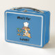 A cute Rabbit cooking up some carrots on the stove. Wording Asks "What's for lunch"? Customize the back of the lunchbox and the color which is now blue.