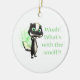 Lightweight, smooth, pure white ornament with nice sheen. Perfect size to be seen from across the room ... and to attract closer inspection! Price was great for ordering enough for the whole family! Clear, bold black design just as requested. Matches the order exactly. Just so nice!