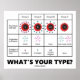 Showcase your wry health and medicine attitude with a dose of educational, scientific humor with this poster featuring the different blood cell groups (blood cell types) along with the following query that will make others do a double-take: "What's Your Type?" No need to be a hematologist to enjoy!