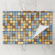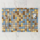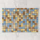 This placemat design features a pattern of square tiles with colors inspired by those of a wheat field setting during the harvest season. The blues are inspired by the clear sky during the day. The beiges and browns are inspired by the colors of the wheat being harvested. [~Z0000072]