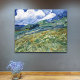 A fine art wrapped canvas with the post-impressionist painting, Wheat Field with Mountains (1889), by Vincent van Gogh (1853-1890). Green fields on a mountainside with a cloudy blue sky, painted in Saint-Remy-Blanzy, France.
