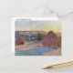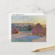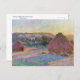 A fine art postcard with the impressionist painting, Stacks of Wheat (End of Summer) 1890-1891 by Claude Monet (1840-1926). Wheat stacks in a farm field with the sun casting shadows on the field.