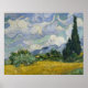 This Wheatfield with Cypresses print is one of three similar 1889 paintings by Vincent van Gogh. All three were painted at the Saint-Rémy mental asylum where he was a patient there at that time. In a letter to his brother, Theo, Vincent described the painting: "I have a canvas of cypresses with some ears of wheat, some poppies, a blue sky like a piece of Scotch plaid; the former painted with a thick impasto ... and the wheat field in the sun, which represents the extreme heat, very thick too."