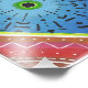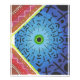 A colorful, geometric design of a solar eclipse