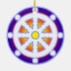 "Wheel of Dharma" or "Wheel of Life", is a symbol that has represented dharma, the Buddha's teaching of the path to enlightenment, since the early period of Indian Buddhism.[1] A similar symbol is also in use in Jainism. It is one of the Ashtamangala symbols. The Dharmachakra symbol is represented as a chariot wheel (Sanskrit cakram) with eight or more spokes. It is one of the oldest known Buddhist symbols found in Indian art, appearing with the first surviving post-Harappan Indian iconography in the time of the Buddhist king Aśoka.[2] The Dharmacakra has been used by all Buddhist nations as a symbol ever since. In its simplest form, the Dharmachakra is recognized globally as a symbol for Buddhism. http://en.wikipedia.org/wiki/Wheel_of_dharma