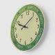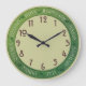 This beautiful Wheel of the Year clock has Arts & Crafts style numbers on a vibrant green background.