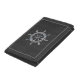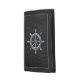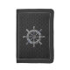 A nautical wheel design on a black carbon fiber style background decor. A racy modern nautical gift.