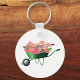 A lovely display of flowers in a wheelbarrow. This is a wonderful piece that is so colorful and bright. The flowers are in a green wheelbarrow. This wheelbarrow full of flowers design looks great on this keychain. Perfect for yourself or as a gift