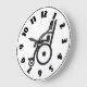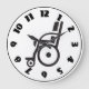 This design is a wheelchair icon. The wheelchair is side on and a black outline. This wheelchair icon design looks great on this Clock