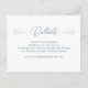 Seashells wedding details enclosure cards. Use for supplying guests with pertinent information about the event. Two lightning whelk shells decorate the top next to “Details” wording. All text is sea blue color. A wedding website can be included to direct guests for more information, to reply online, and to see engagement photos as you prefer. This card comes in other sizes with more paper selections. The elegant metallic silver paper is shown here which is more expensive.