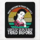 When Choosing Between Two Evils I Always Pick The One I've Never Tried Before. This retro sarcastic funny quote accessory makes a great gag gift for a man or woman who have a reputation for bad decisions or being a troublemaker, and love sarcasm. Funny saying design for anyone who loves to get into mischief with their friends, likes going to a party, getting into trouble or drinking together. Perfect for anyone with a sassy sense of humor. Features an innocent looking woman set against a sunset.