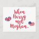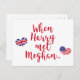 NewParkLane - Postcard, with fun quote 'When Harry met Meghan', in red script typography, and the flags of the United Kingdom and the United States in heart shapes. A great card to invite your friends to a Royal Wedding Watch Party of Prince Harry and Meghan Markle of May 19th, 2018!