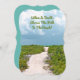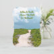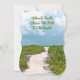 Photography. Sandy path meandering through green beach grass amd leading to the turquoise water and beach. Blue sky and white billowy clouds. Text (customizable): "When in doubt, choose the path to the beach". Reverse side is blank and can be customized.