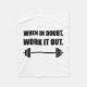 Bodybuilders, weightlifters, and trainers that workout, exercise and train at the gym joke all when in doubt work it out. Check out this funny custom design on tees, shirts, mugs, gifts and apparel.