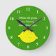 When life gives you lemons make lemonade small round clock. Inspirational quote kitchen clock with yellow lemon drawing.