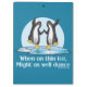 When on thin ice, might as well dance. Funny and witty slogan / saying with two penguins dancing together on cracked ice. What's the sense of worrying when you can't change the circumstances. Don't worry, be happy! With a blue background. Winter Penguin Design.