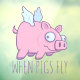 Cartoon vector illustration of a flying pig with When Pigs Fly phrase. Keywords: animal, cartoon, drawing, farm, fly, humor, illustration, mammal, oink, pig, pigs, vector, when, wing