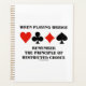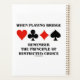 Duplicate bridge players will enjoy this planner with the bridge truism saying "When Playing Bridge Remember The Principle Of Restricted Choice". Make others do a double-take about exactly what cards are held in the hands of your partner and the opponents with this bridge attitude planner featuring all four card suits. Memorable advice for any die-hard bridge player who loves to decide at the bridge table.