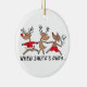 Lightweight, smooth, pure white ornament with nice sheen. Perfect size to be seen from across the room ... and to attract closer inspection! Price was great for ordering enough for the whole family! Clear, bold black design just as requested. Matches the order exactly. Just so nice!