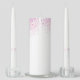 When two join with love as one abstract watercolor dab showering cascade modern art and scripted font unity candle. Personalize with your own bride and grooms names and wedding date and initials on the two side candles. Other matching wedding items and colorways available. Original abstract painting and design by Sarah Trett for www.mylitteedenweddings.com on zazzle.