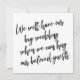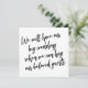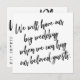 This suite's distinction is due to the bold, casual handwritten script font used for accent phrases. If you're in the position of needing to inform your wedding guests that you've had to change your big date, here is a bold option. In this piece, the hand-lettered script font was used to create simple typography graphics. On the front is "We will have our big wedding when we can hug our beloved guests" and on the back, "New Plan". Use the template fields to add your personal details and make this modern design your own. The background can be changed to any color you prefer. Please reach out with any special requests or for customizing assistance. // 105 //