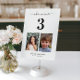 Decorate your wedding table with this number card, featuring bride and groom's childhood pictures and custom text of your choice. Easily add your own details by clicking on the "personalize" option.
