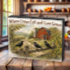 Bring timeless country charm to your home with this rustic wooden box sign featuring the heartfelt phrase, “Where Crows Call and Corn Grows.” Set against a softly distressed whitewashed wood background, the design showcases a picturesque red barn and silo along a winding country lane, framed by golden corn stalks and three striking black crows perched on a weathered fence. Subtle deepened shadows add warmth and drama, giving the artwork a rich, storybook quality while maintaining a peaceful farmhouse feel. Perfect for kitchens, entryways, living rooms, or covered porches, this sign captures the quiet beauty of rural life and adds a cozy, vintage-inspired touch to any farmhouse or country décor.