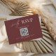 Modern love deserves a modern RSVP card. This elegant burgundy wedding RSVP card features a clean minimalist layout with timeless white typography and QR code. Ideal for contemporary, romantic, or upscale wedding themes, the design balances simplicity with emotional warmth. Customizable for your names, date, venue, and all key details.