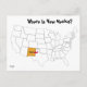 Embark on a captivating journey across the United States with our interactive and educational postcards! Introducing our popular design featuring a blank US map with the intriguing question, 'Where Is New Mexico?' Let the spirit of adventure guide you as you trace your fingers along the map, following the arrow that precisely points to the enchanting state of New Mexico. The word 'Here' elegantly displayed alongside the arrow adds a touch of excitement to this postcard.