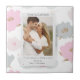 Where It All Began Romantic Couples Personalized Decorative Tiles feature a modern abstract pink floral with gold glitter accents. In the center add your favorite photo and your text of how you met. Easy DIY (Do It Yourself) by editing the text in the text boxes provided. Designed by ©Evco Studio www.zazzle.com/store/evcostudio