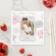Where It All Began Romantic Couples Personalized Napkins feature a modern abstract pink floral with gold glitter accents. In the center add your favorite photo and your text of how you met. Easy DIY (Do It Yourself) by editing the text in the text boxes provided. Designed by ©Evco Studio www.zazzle.com/store/evcostudio