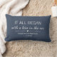 Where it all began... Cute pillow featuring the location and the date you met, with an adorable heart. Choose your own color and personalize this custom design with your own names and text. Perfect gift to tell your love story on Valentine's Day, your Anniversary or Wedding, and celebrate the beginning of something special.
