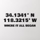 Where it all began. GPS Coordinates Personalized wall decal from Ricaso - change text to suit your needs. You can find your personalized GPS coordinates by searching online, if possible it is best to copy and paste the result.