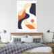 This piece is built from slow, bending forms that feel as if they are sliding past one another rather than colliding. Each curve holds its own weight, yet yields just enough to let the neighboring shape pass, creating a sense of quiet negotiation across the surface. The palette—stone beige, muted rust, deepened navy, and off-white—anchors the movement in something elemental and architectural, like light moving across sculpted stone. There is no focal point demanding attention; instead, the eye drifts naturally along the contours, following the subtle tension between openness and containment. Flat, untextured color keeps the composition honest and contemporary, allowing form and balance to speak without embellishment.