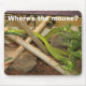 Mousepad with picture of a big green snake and "Where's the mouse?" caption