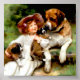 "Which May I Keep" is a priceless image of a young girl in a hat trying to decide which St. Bernard puppy to keep. An "adult" Saint Bernard (perhaps the pup's "mom") appears to be overlooking things. It was painted by the Edwardian genre painter Arthur John Elsley (1860-1952).