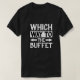 My 11 yo wore adult XL (5’7” 165#). The 8yo is small framed. She wore adult small and tied it in the back. Grandma wore adult large with long sleeve shirt underneath. Tall girl adult medium. Dark haired male adult large. Good quality dark Heather gray, Gildan brand shirt. -it was next up from basic choice and cost about $20 per shirt. Not too thick or thin. Washed and dried well, no major shrinkage. Not see-through. Can wear a bra under it fine. Screen print is just as shown and well done, front and back.
