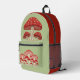 Whimical Red and Tan Mushroom and Sage Green Printed Backpack