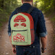This cute backpack feature two vivid, stylized mushroom designs in red and tan againt a backgrouond of boho sage green. The red of the side and top accent the green. The mushrooms are printed on but have a faux textured, textile-like look. Whether you're looking for a gift for a mycologist, are a fun guy (fungi), or just love cute mushroom designs, this might be the right pick for you.