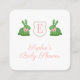 Enhance your baby shower invitations with a hand-painted watercolor green boxwood bunny insert card, featuring a pink bow and a personalized monogram. This charming card includes a QR code for easy access to additional details, adding a whimsical and personalized touch to your celebration. Preppy hand painted watercolor boxwood topiary bunny rabbit for this baby shower enclosure card design, which also features a QR code. You can use this to put the registry link, or the RSVP.