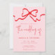 Whimsica Pink Red Bow QR Code Reception Wedding Invitation